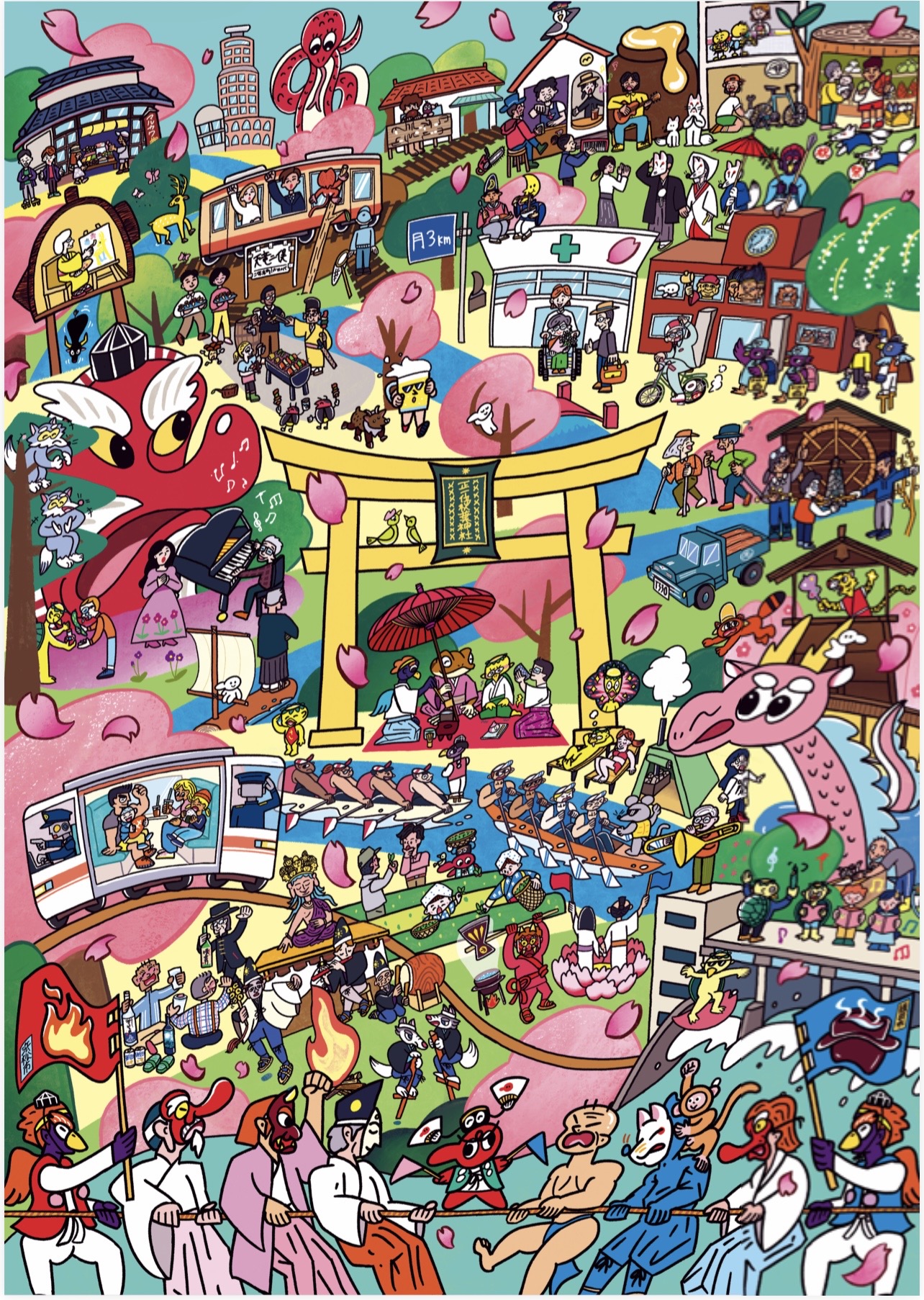 秋葉神社の金鳥居と天狗のおもてなし/春