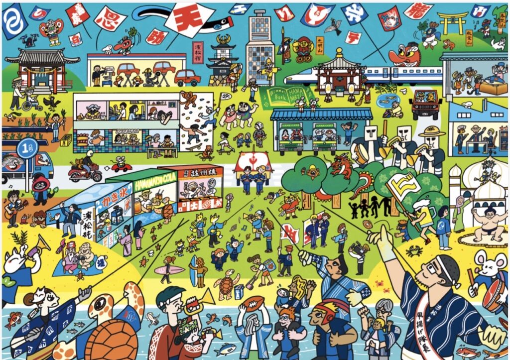 浜松の田んぼアートは、ここ寺脇町や雄踏町で見られるよ。稲の成長に合わせて、8月下旬~9月下旬頃に見頃を迎えるよ。